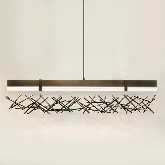 Designed by Zac Ridgely, the Level/Criss-Cross LED Linear Suspension is a festival of lines energized by the brilliance of modern lighting. A sleek housing suspends in the air, showing off the sheer edges of its linear form. A hand-rubbed acrylic diffuser mirrors the shape of the housing, contrasting in its…
