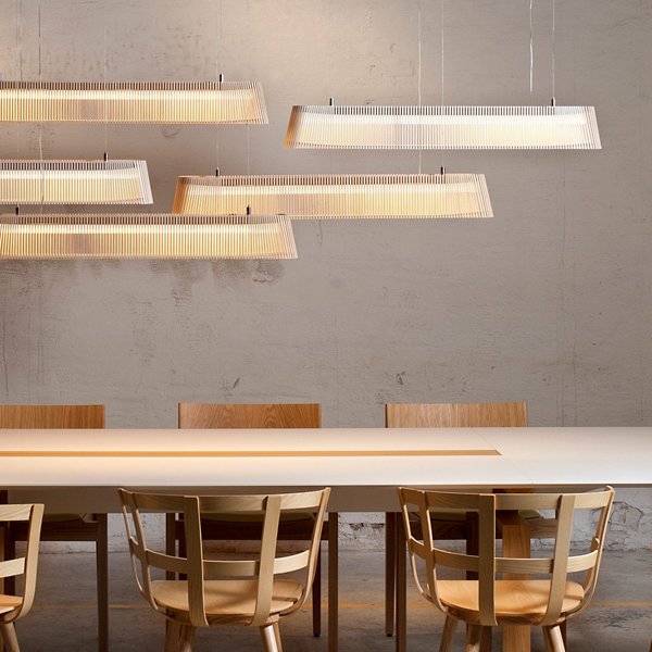 Material: Form-pressed birch slats, fine-textured powder-coated steel case, acrylic diffuser